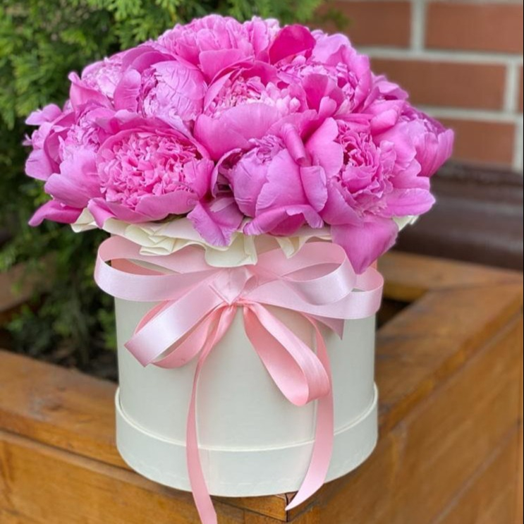 15 pivoines dans une boîte à chapeau