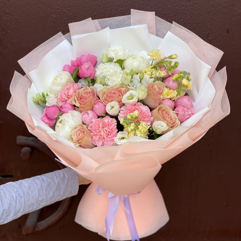 Author's bouquet with carnations and peonies