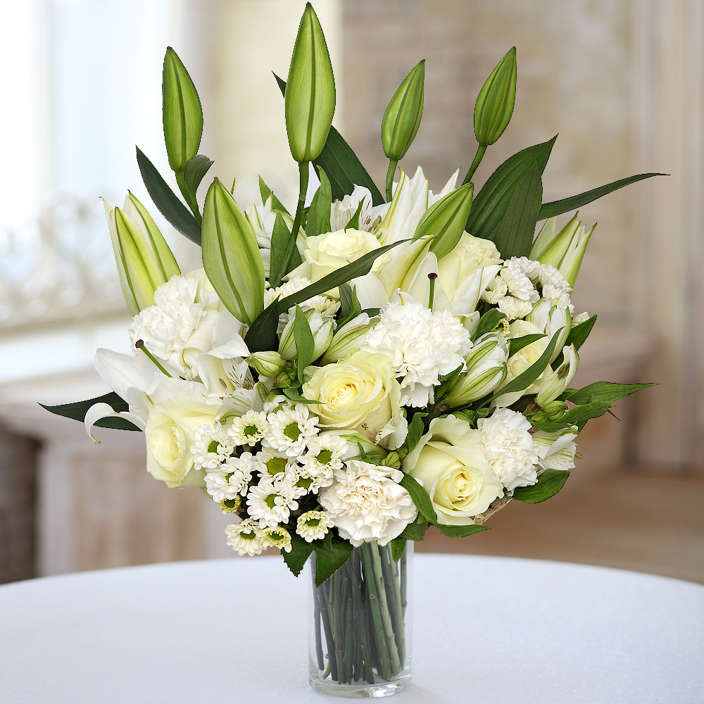 Les fleurs blanches ravissent par leur beauté éblouissante. Ce bouquet peut être décrit en deux mots : élégant et classique.